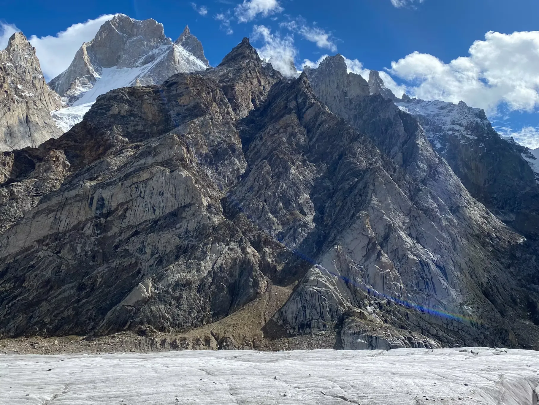 The Karakoram is a younger, more rugged range, characterized by its sharp, jagged peaks and vast glacial systems. Geologically, it is a complex and active region, with some of the most dramatic mountain architecture on the planet. It is home to K2, the world’s second-highest mountain, and a dense concentration of 7,000 and 8,000-meter peaks, including four of the world’s fourteen 8000ers in close proximity. The mountains here rise from a higher base altitude, creating a landscape that feels more consistently high and wild. The scenery is stark and dramatic, a world of rock and ice on an epic scale, with glaciers like the Baltoro and Biafo carving immense valleys through the heart of the range.